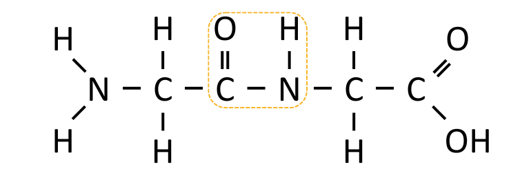 Diagram of a peptide bond broken by hydrolysis - OCR A Level Biology